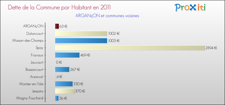 A noter : la valeur moyenne de la dette par habitant des communes françaises similaires à Argançon était de 505 € par habitant, en 2011.