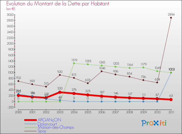 Par rapport aux 109 habitants de Argançon, en 2011 le poids de cette dette représente 63 € par habitant.