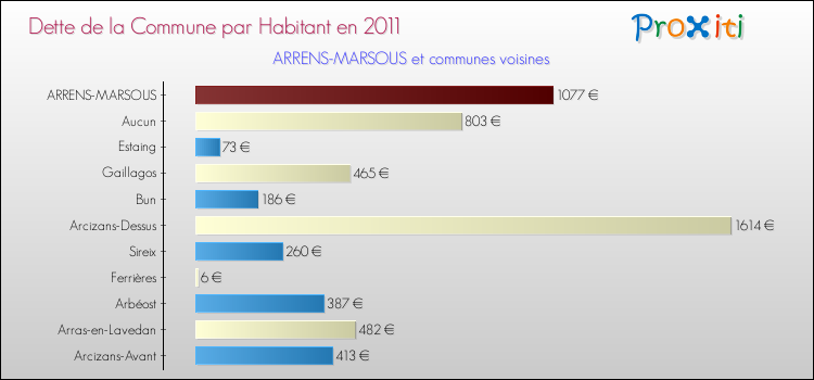 A Arrens-Marsous, ce montant de la dette est en augmentation de 5.38 % par rapport à 2010.