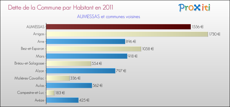 A Aumessas, la dette due par habitant de la commune en 2011 est donc plus élevée de 209.34 % que pour des communes similaires.