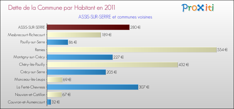 Par rapport aux 271 habitants de Assis-sur-Serre, en 2011 le poids de cette dette représente 280 € par habitant.