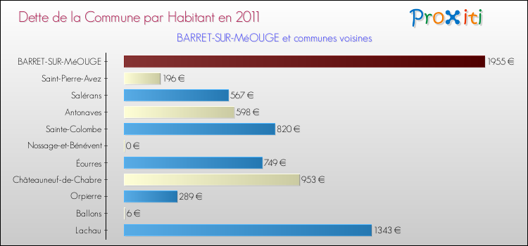 A Barret-sur-Méouge, la dette par habitant a donc augmenté de 167.81 % entre 2000 et 2011.