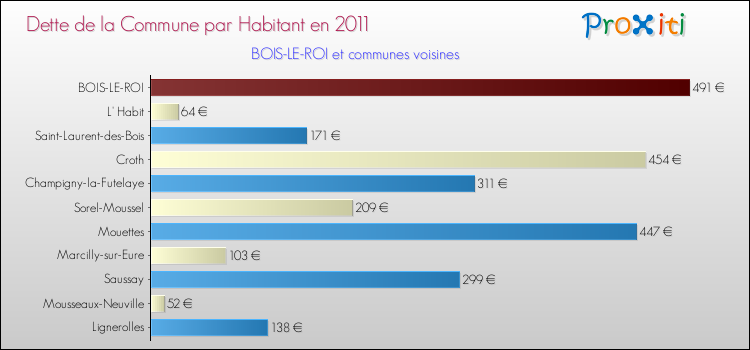 Par rapport aux 966 habitants de Bois-le-Roi, en 2011 le poids de cette dette représente 491 € par habitant.