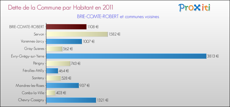 A Brie-Comte-Robert, la dette due par habitant de la commune en 2011 est donc plus élevée de 18.5 % que pour des communes similaires.
