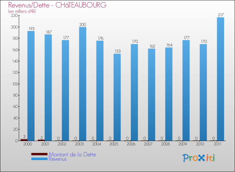 Comparaison Revenus/Dette de Châteaubourg (de 2000 à 2011)