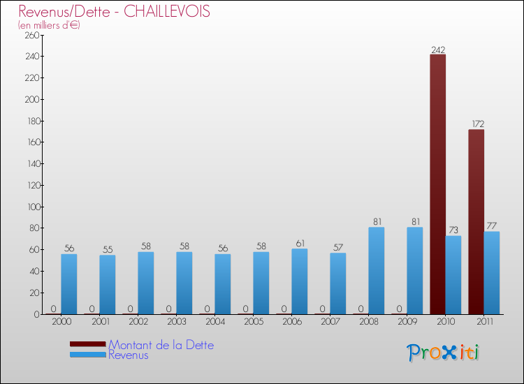 Comparaison Revenus/Dette de Chaillevois (de 2000 à 2011)
