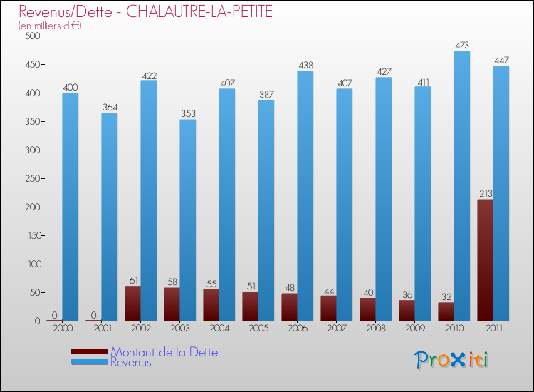 Comparaison Revenus/Dette de Chalautre-la-Petite (de 2000 à 2011)