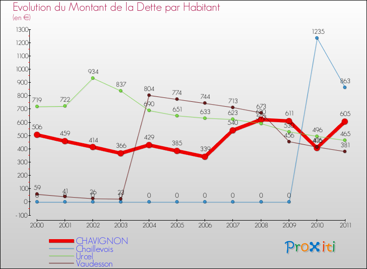 A Chavignon, ce montant de la dette est en augmentation de 51.5 % par rapport à 2010.