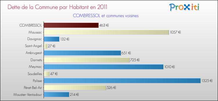 Par rapport aux 369 habitants de Combressol, en 2011 le poids de cette dette représente 463 € par habitant.