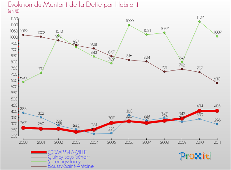 A Combs-la-Ville, la dette par habitant a donc augmenté de 50.94 % entre 2000 et 2011.