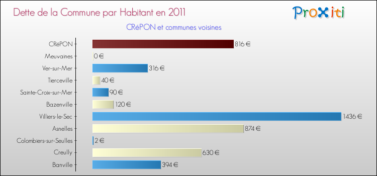 Comparaison de la dette par habitant de la commune en 2011 pour CRéPON et les communes voisines