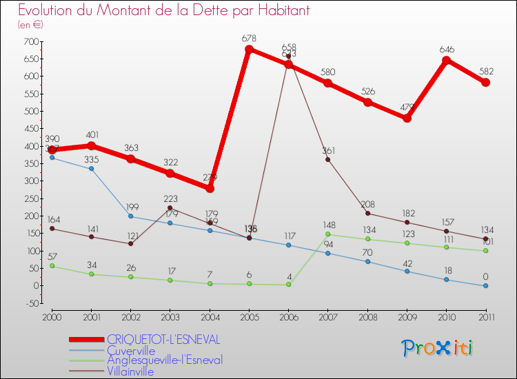 A Criquetot-l'Esneval, la dette par habitant a donc augmenté de 49.23 % entre 2000 et 2011.