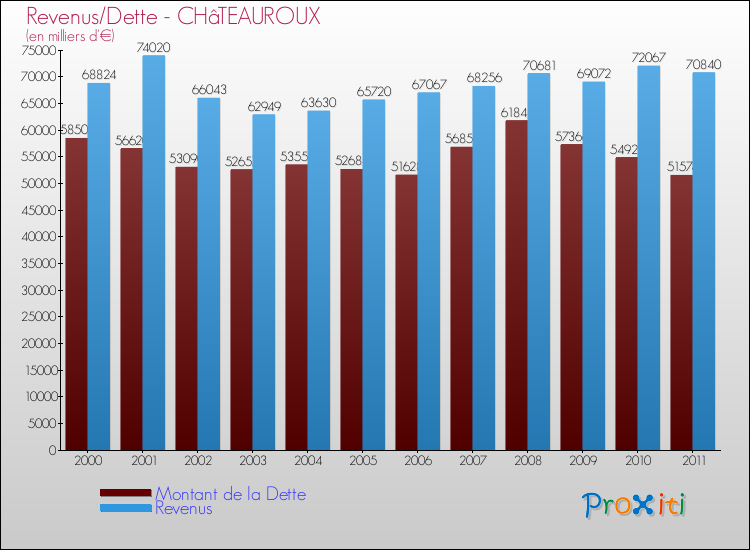 Comparaison Revenus/Dette de Châteauroux (de 2000 à 2011)
