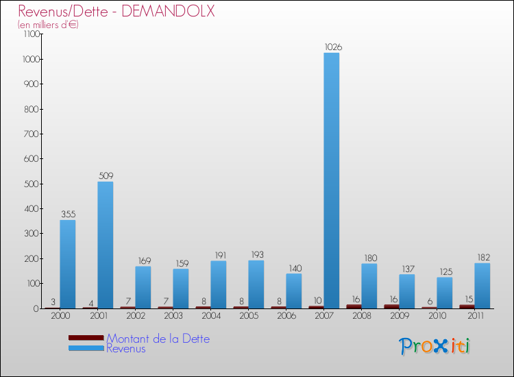 Comparaison Revenus/Dette de Demandolx (de 2000 à 2011)
