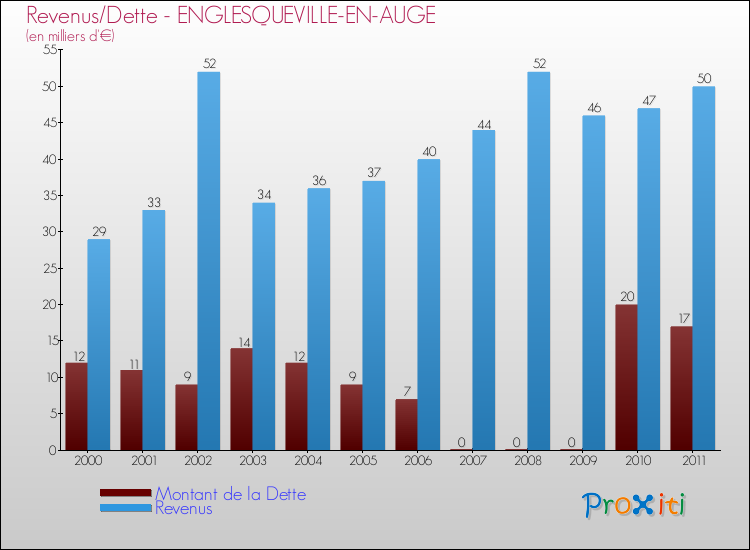 Comparaison Revenus/Dette de Englesqueville-en-Auge (de 2000 à 2011)