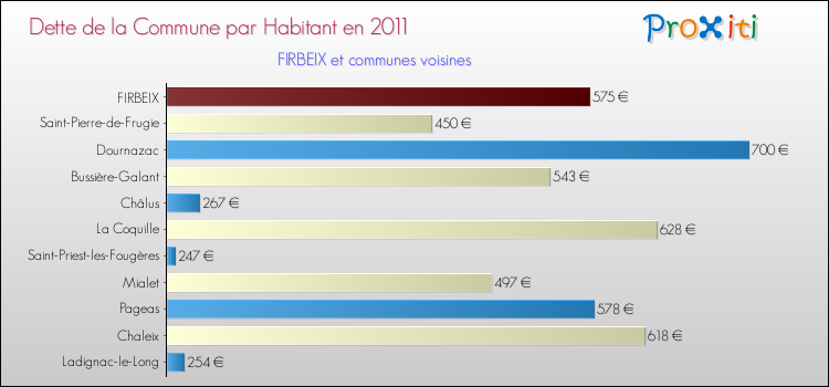 A Firbeix, la dette par habitant a donc augmenté de 169.95 % entre 2000 et 2011.