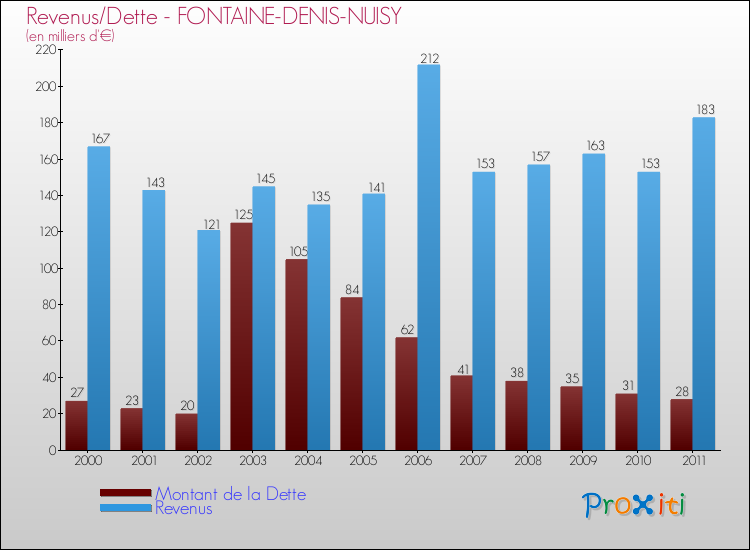 Comparaison Revenus/Dette de Fontaine-Denis-Nuisy (de 2000 à 2011)