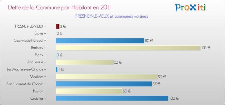En 2011, Fresney-le-Vieux a dû ainsi payer 0 € pour rembourser sa dette.
