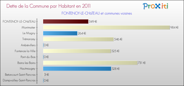 Comparaison de la dette par habitant de la commune en 2011 pour FONTENOY-LE-CHâTEAU et les communes voisines