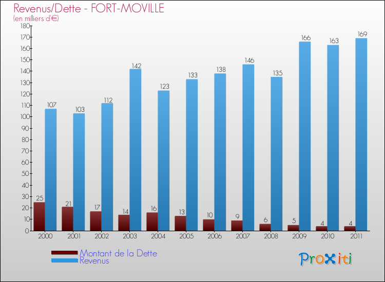 Comparaison Revenus/Dette de Fort-Moville (de 2000 à 2011)