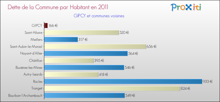 Par rapport aux 225 habitants de Gipcy, en 2011 le poids de cette dette représente 166 € par habitant.