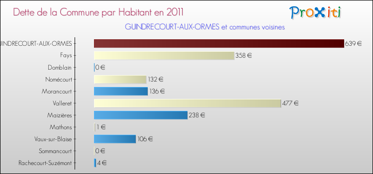 A Guindrecourt-aux-Ormes, ce montant de la dette est pourtant en baisse de 10.34 % par rapport à 2010.