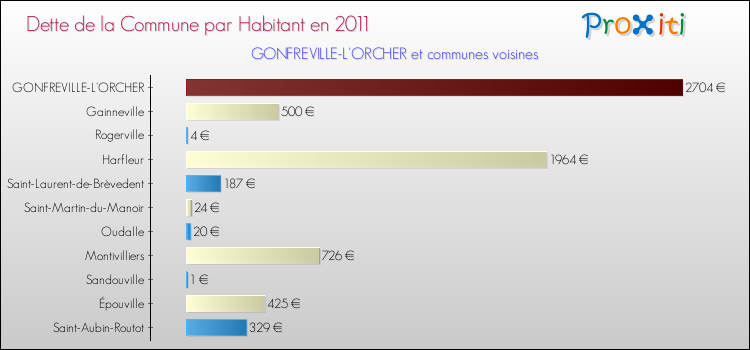 A Gonfreville-l'Orcher, la dette due par habitant de la commune en 2011 est donc plus élevée de 209.38 % que pour des communes similaires.