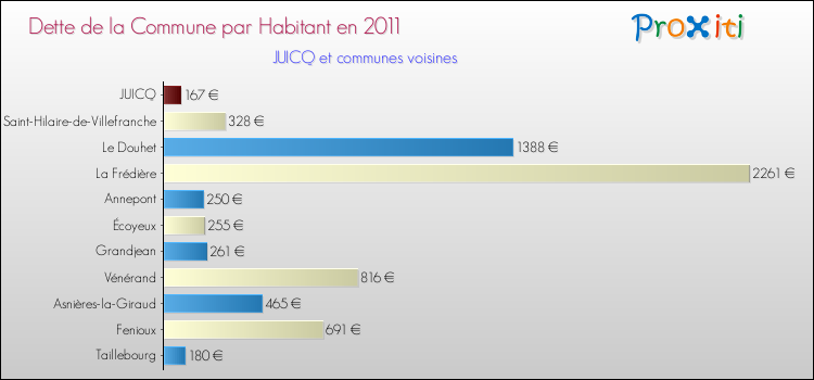 A noter : la valeur moyenne de la dette par habitant des communes françaises similaires à Juicq était de 505 € par habitant, en 2011.