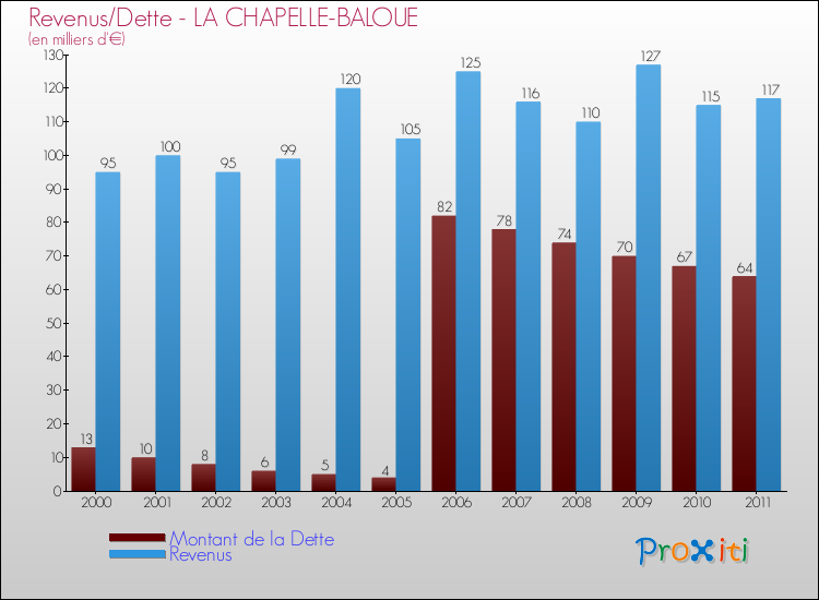Comparaison Revenus/Dette de La Chapelle-Baloue (de 2000 à 2011)