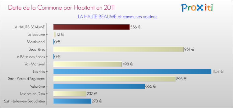 A La Haute-Beaume, la dette due par habitant de la commune en 2011 est donc plus élevée de 10.54 % que pour des communes similaires.