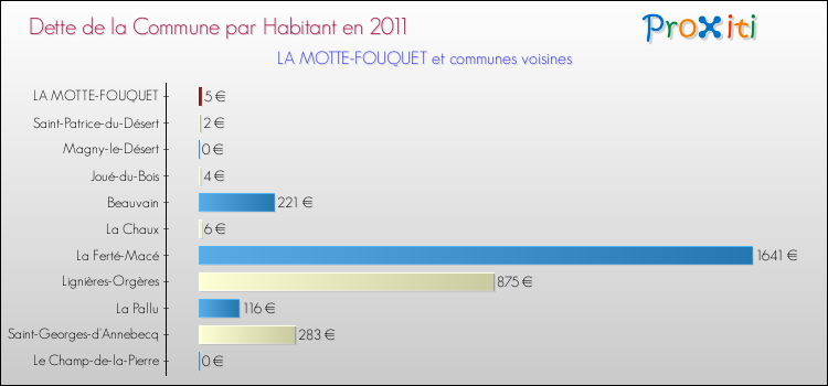 Par rapport aux 168 habitants de La Motte-Fouquet, en 2011 le poids de cette dette représente 5 € par habitant.