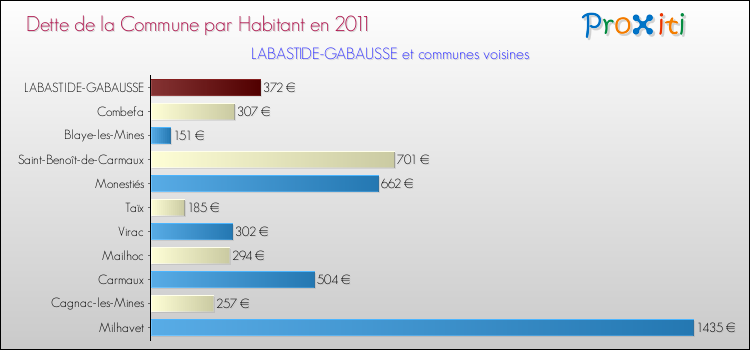 Par rapport aux 449 habitants de Labastide-Gabausse, en 2011 le poids de cette dette représente 372 € par habitant.