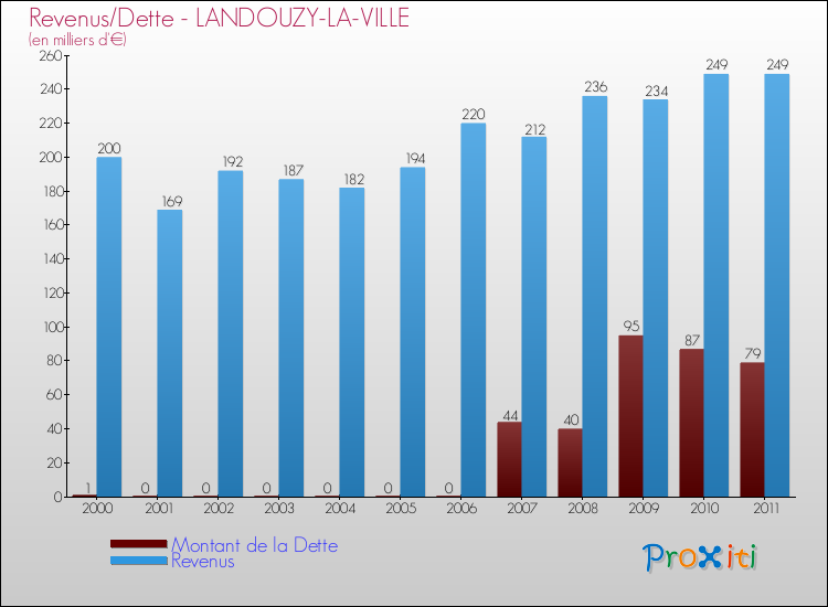 Comparaison Revenus/Dette de Landouzy-la-Ville (de 2000 à 2011)