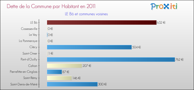 Pendant la même période, les communes françaises similaires à Le Bô, ont vu leur dette par habitant augmenter de 23.59 % en moyenne entre 2000 et 2011.