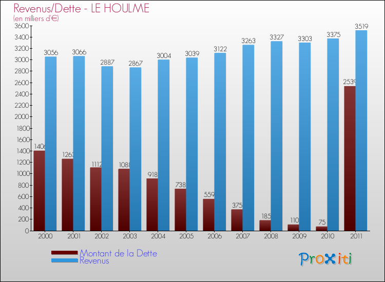 Comparaison Revenus/Dette de Le Houlme (de 2000 à 2011)
