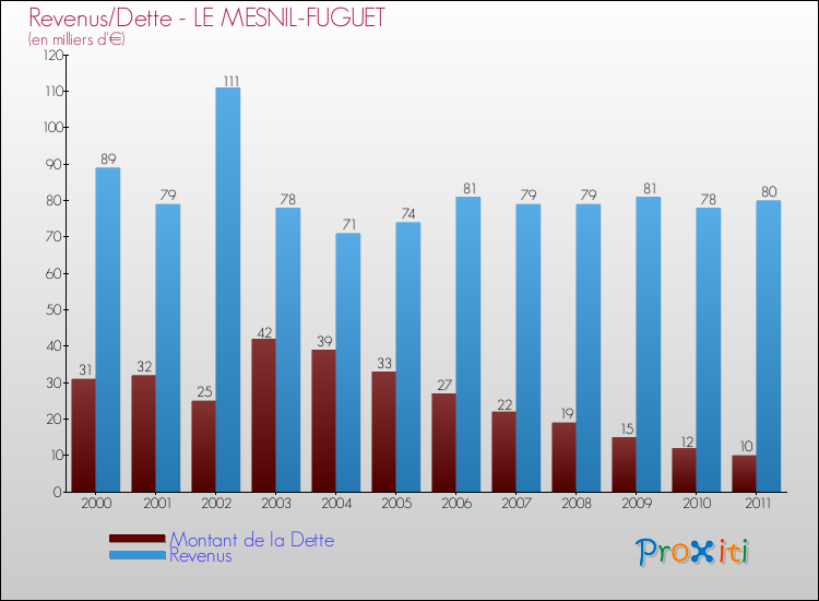 Comparaison Revenus/Dette de Le Mesnil-Fuguet (de 2000 à 2011)