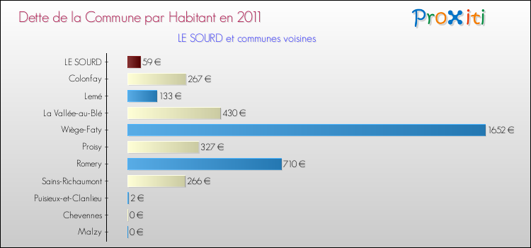 A noter : la valeur moyenne de la dette par habitant des communes françaises similaires à Le Sourd était de 505 € par habitant, en 2011.