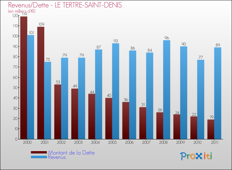 Comparaison Revenus/Dette de Le Tertre-Saint-Denis (de 2000 à 2011)
