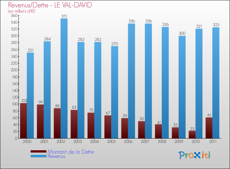 Comparaison Revenus/Dette de Le Val-David (de 2000 à 2011)