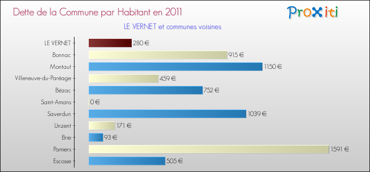 Par rapport aux 654 habitants de Le Vernet, en 2011 le poids de cette dette représente 280 € par habitant.