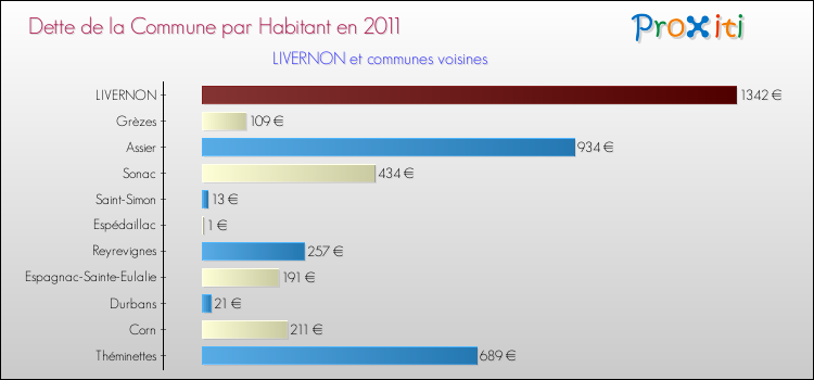 A Livernon, la dette due par habitant de la commune en 2011 est donc plus élevée de 108.39 % que pour des communes similaires.