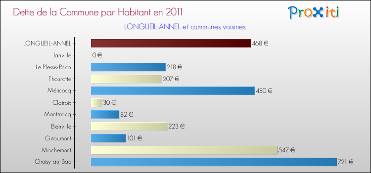 A Longueil-Annel, la dette due par habitant de la commune en 2011 est donc moins élevée de 40.08 % que pour des communes similaires.