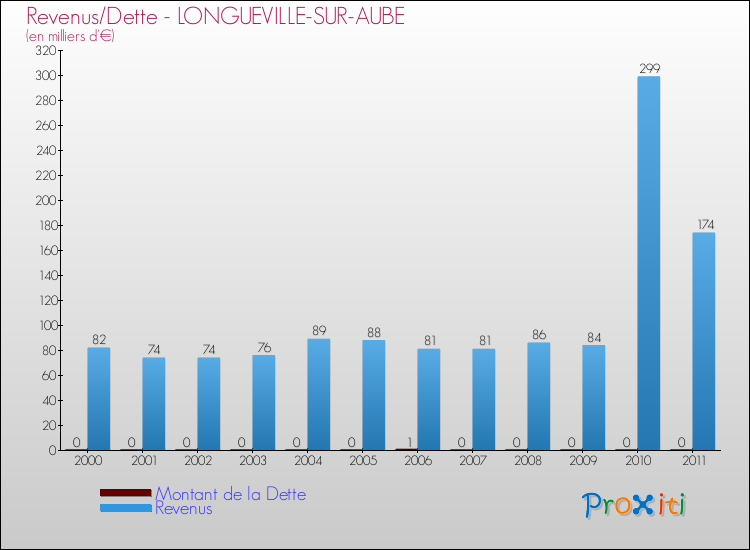 Comparaison Revenus/Dette de Longueville-sur-Aube (de 2000 à 2011)