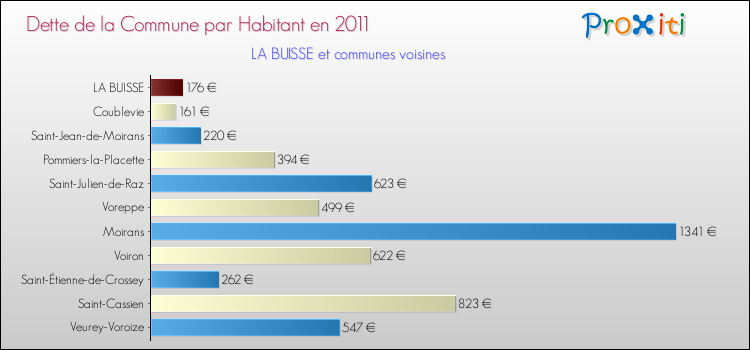 Par rapport aux 2 741 habitants de La Buisse, en 2011 le poids de cette dette représente 176 € par habitant.