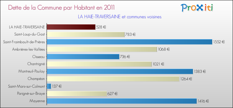 A La Haie-Traversaine, la dette due par habitant de la commune en 2011 est donc moins élevée de 10.81 % que pour des communes similaires.