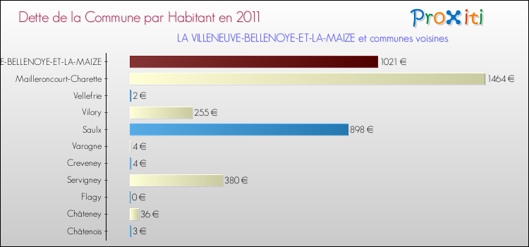 A La Villeneuve-Bellenoye-et-la-Maize, la dette due par habitant de la commune en 2011 est donc plus élevée de 102.18 % que pour des communes similaires.