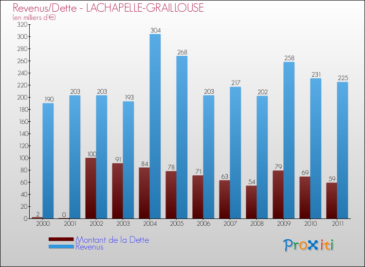 Comparaison Revenus/Dette de Lachapelle-Graillouse (de 2000 à 2011)
