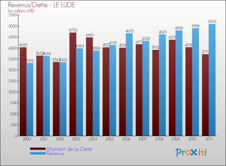 Comparaison Revenus/Dette de Le Lude (de 2000 à 2011)