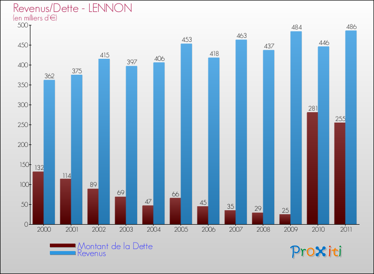 Par rapport aux 784 habitants de Lennon, en 2011 le poids de cette dette représente 325 € par habitant.