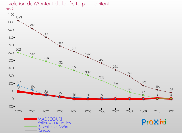 A Madecourt, la dette par habitant a donc baissé de 100 % entre 2000 et 2011.